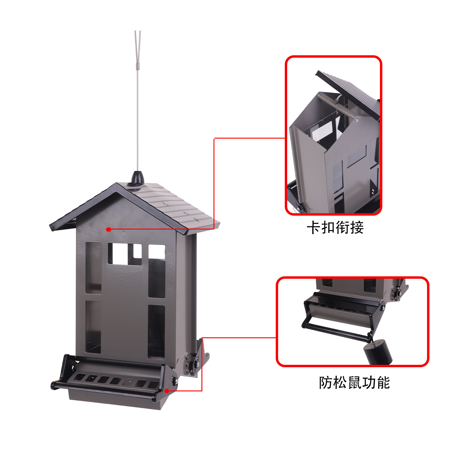 | Production Name: | House-Style Garden Bird Feeder with Sturdy Metal Construction and Safety Lock Adjustable Feeding Ports |