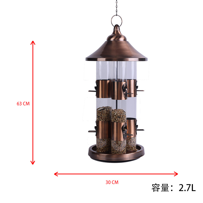 | Production Name: | Metal Hanging Bird Feeder with Multiple Feeding Ports Transparent Seed Feeder with Copper Accents |