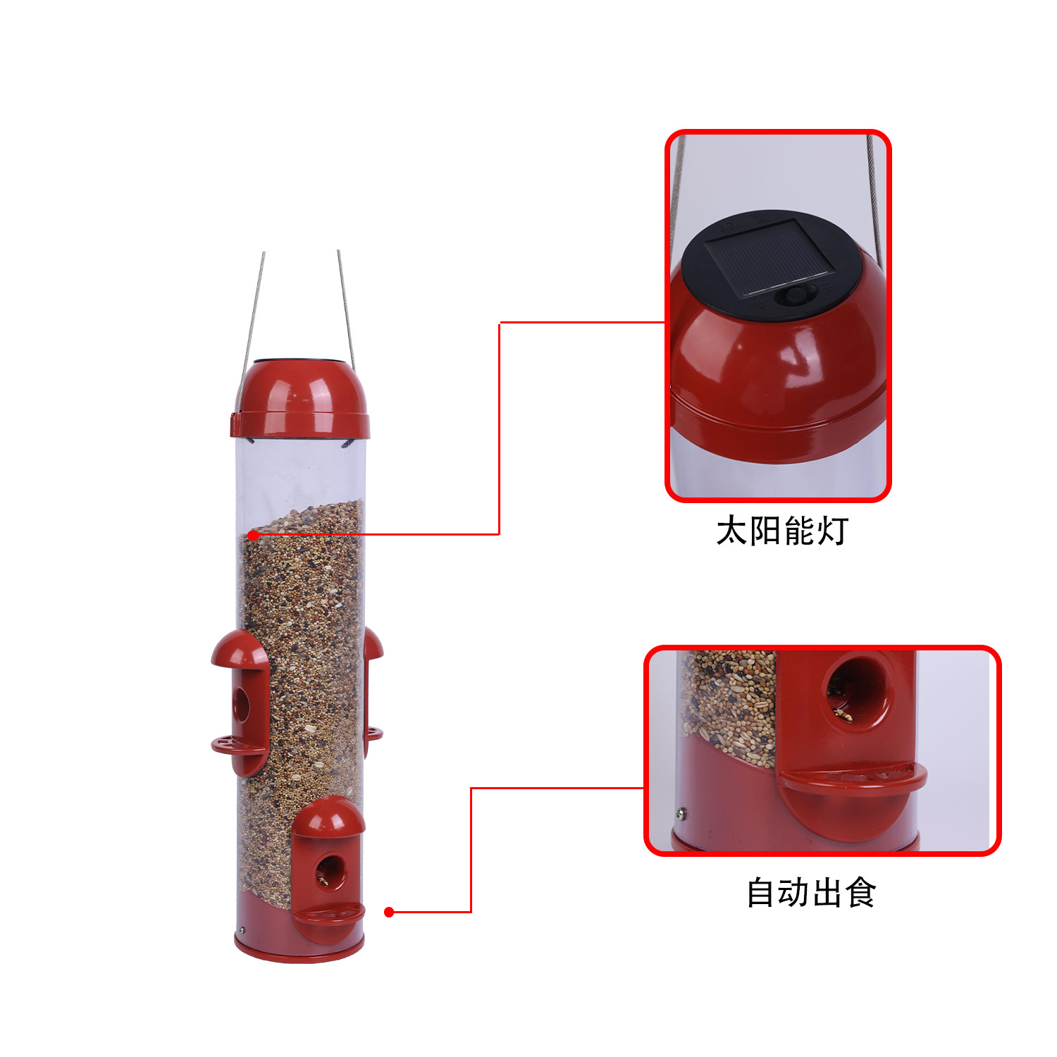 | Production Name: | Solar-Powered Hanging Bird Feeder with LED Light Automatic Seed Dispenser Bird Feeder with Solar Lamp |